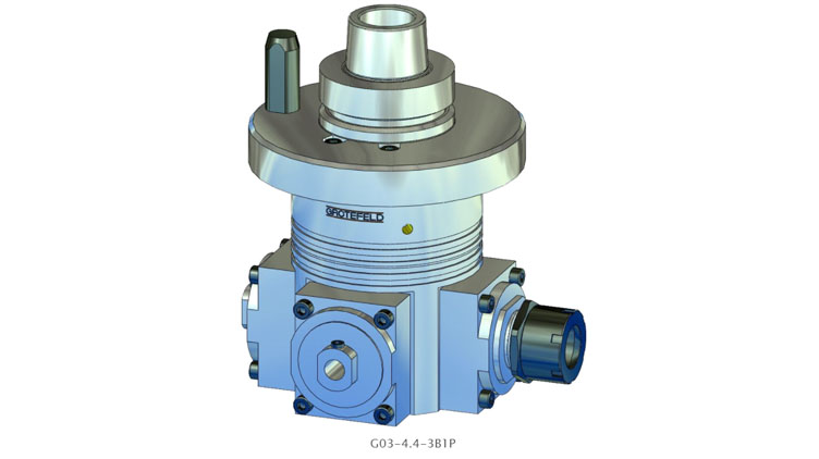 G03 系列的角頭具有多達(dá)四個(gè)加工主軸。所有刀架的主軸旋轉(zhuǎn)方向始終與驅(qū)動(dòng)器的旋轉(zhuǎn)方向相同。驅(qū)動(dòng)速度以 1:1.55 的比例傳遞到刀架。間歇運(yùn)行時(shí)主軸最高轉(zhuǎn)速可達(dá) 18,000 rpm。