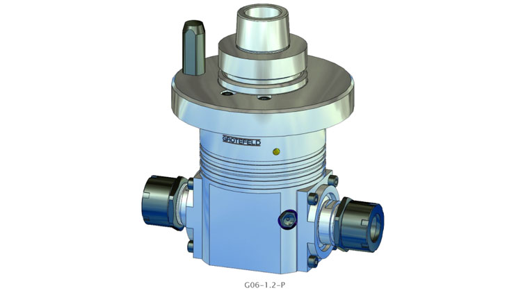 G06-1.2 系列角頭具有帶兩個刀架的連續(xù)加工主軸。這意味著兩個刀架之一的主軸旋轉(zhuǎn)方向與驅(qū)動旋轉(zhuǎn)方向相同,另一個刀架的主軸旋轉(zhuǎn)方向與驅(qū)動方向相反。驅(qū)動速度以 1:1.55 的比例傳遞到刀架。間歇運行時主軸最高轉(zhuǎn)速可達(dá) 20,000 rpm。