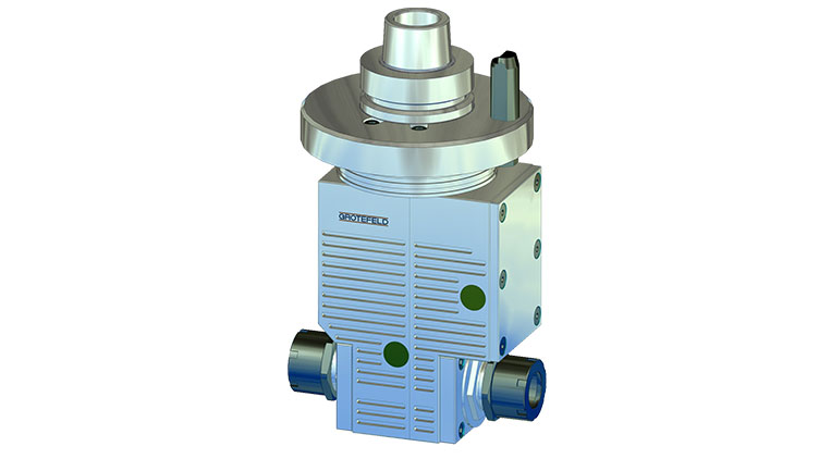 G46-1.2-P 系列的角銑刀頭有一個帶兩個刀架的連續(xù)加工主軸。這意味著兩個刀架之一的主軸旋轉(zhuǎn)方向與驅(qū)動旋轉(zhuǎn)方向相同,另一個刀架的主軸旋轉(zhuǎn)方向與驅(qū)動方向相反。