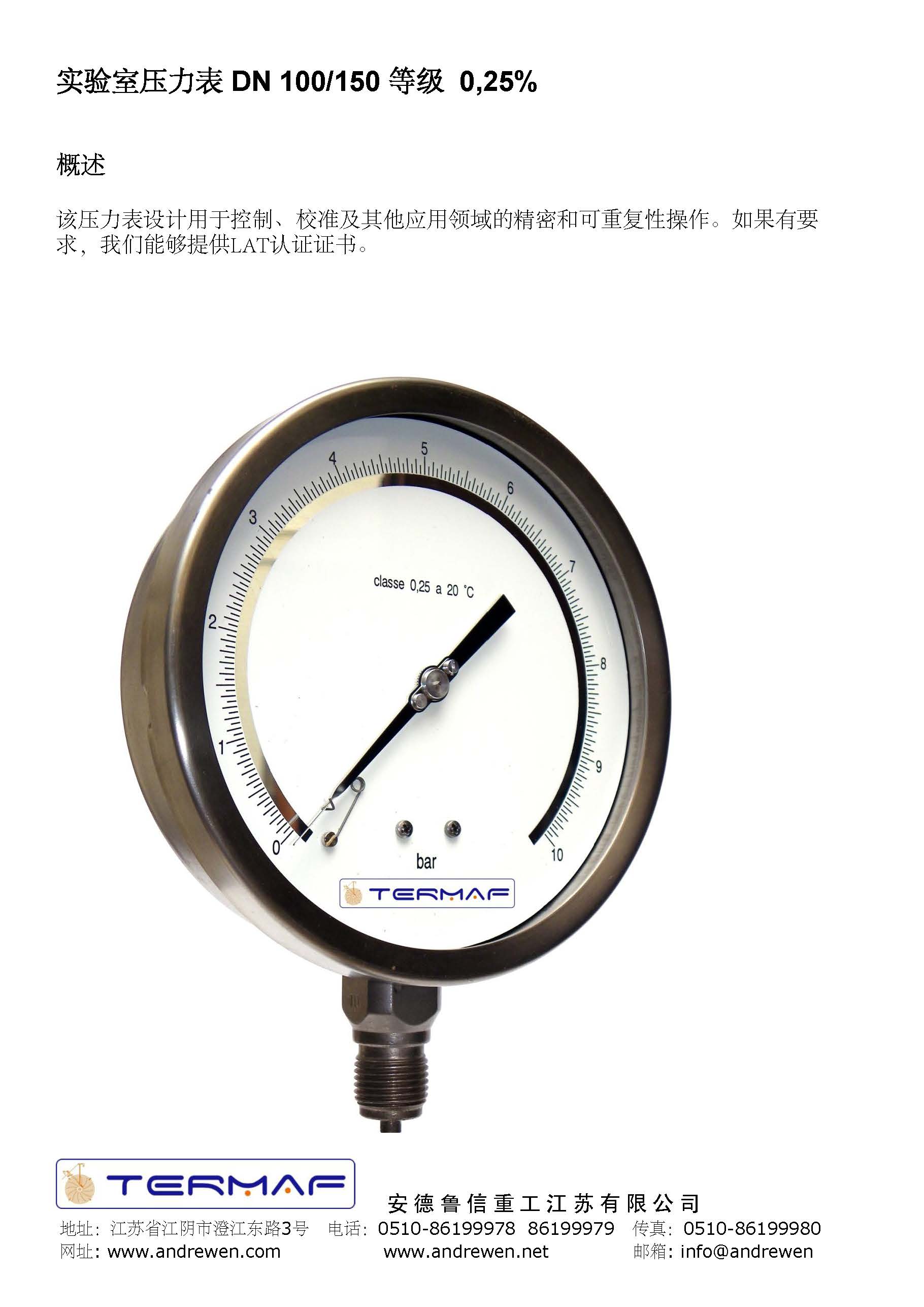 實驗室壓力表 DN 100/150 等級 0,25%-意大利TERMAF