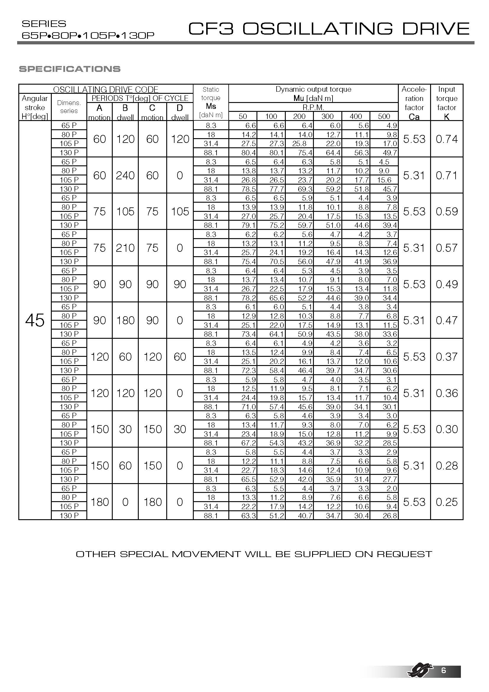 尺寸 400P、500P 和 650P 不在目錄中,因?yàn)樗鼈兪菫樘厥庖蠖谱鞯摹?/span> 與 COLOMBO FILIPPETTI spa 的其他產(chǎn)品一樣,該機(jī)構(gòu)可以根據(jù)需要制造成具有不同的運(yùn)動(dòng)規(guī)律和特殊周期。 |